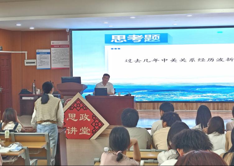 本网讯(通讯员 谢欣/文 曾倩/图)4月30日下午,校党委常委、副校长周得力以“探寻新时期中美正确相处之道”为主题,为工商管理学院2024级市场营销专业的同学们带来了一堂精彩生动、深入浅出的专题思政课。