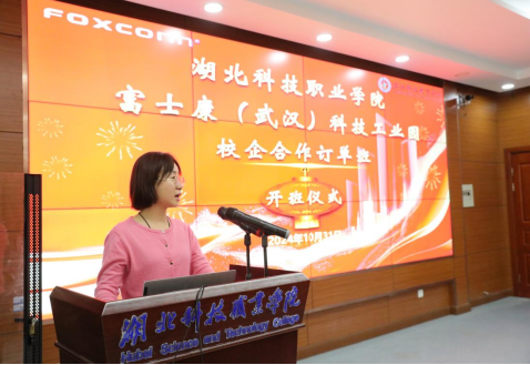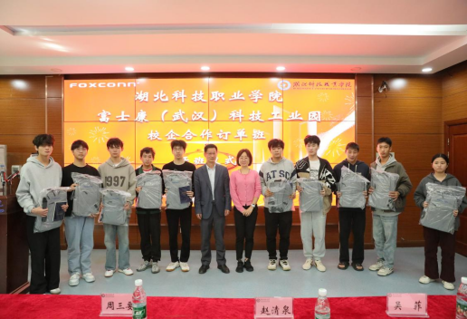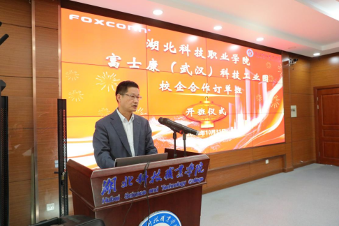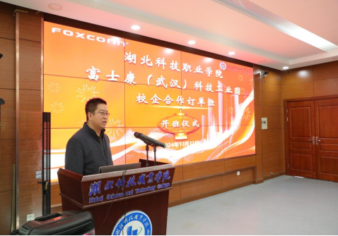 本网讯(通讯员 罗冲/文 李江星/图)为进一步深化校企合作,助力地方产业发展,培养高素质的实用型技能人才,为学生提供优质就业平台,10月31日上午,火狐官方·富士康(武汉)科技工业园校企合作订单班开班仪式顺利举行。机电工程学院领导班子、富士康(武汉)科技工业园相关领导以及订单班全体同学参加开班仪式。仪式由谭闺臣老师主持。